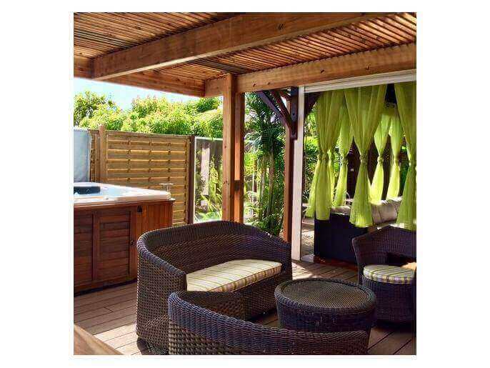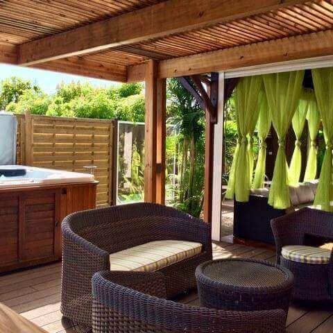 Venez séjourner dans une des 5 villas spacieuses en bois rouge, au coeur d'un jardin tropical avec son espace PISCINE à débordement, avec vue sur mer. Chaque villa est indépendante et possède un spa privé, la villa Désirable a aussi une piscine privée.